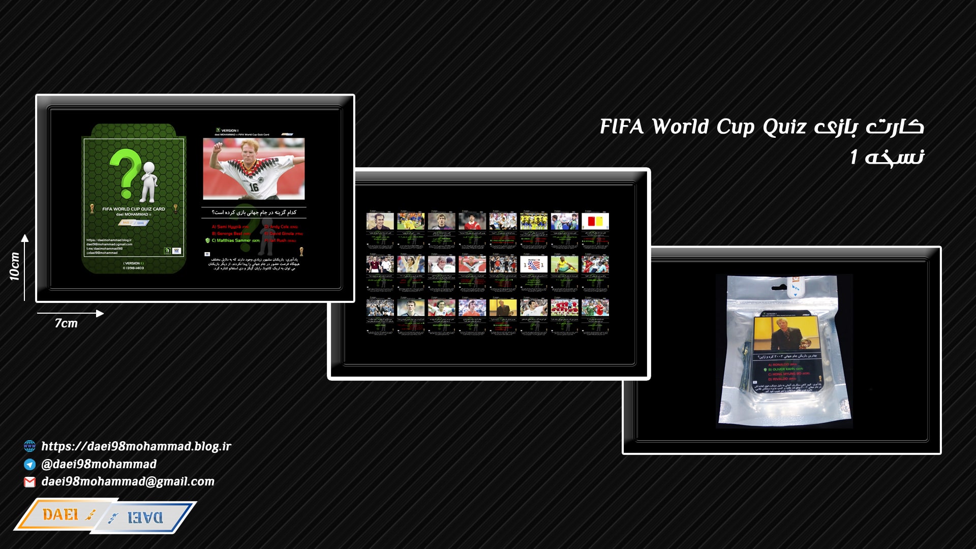 سوالات مربوط به جام جهانی فوتبال به همراه عکس به صورت دورو چاپ با کیفیت مطلوب و بسته بندی مناسب برای بازی.